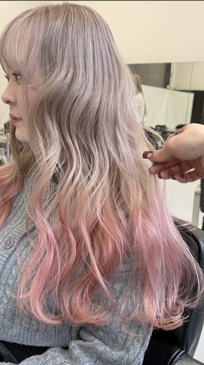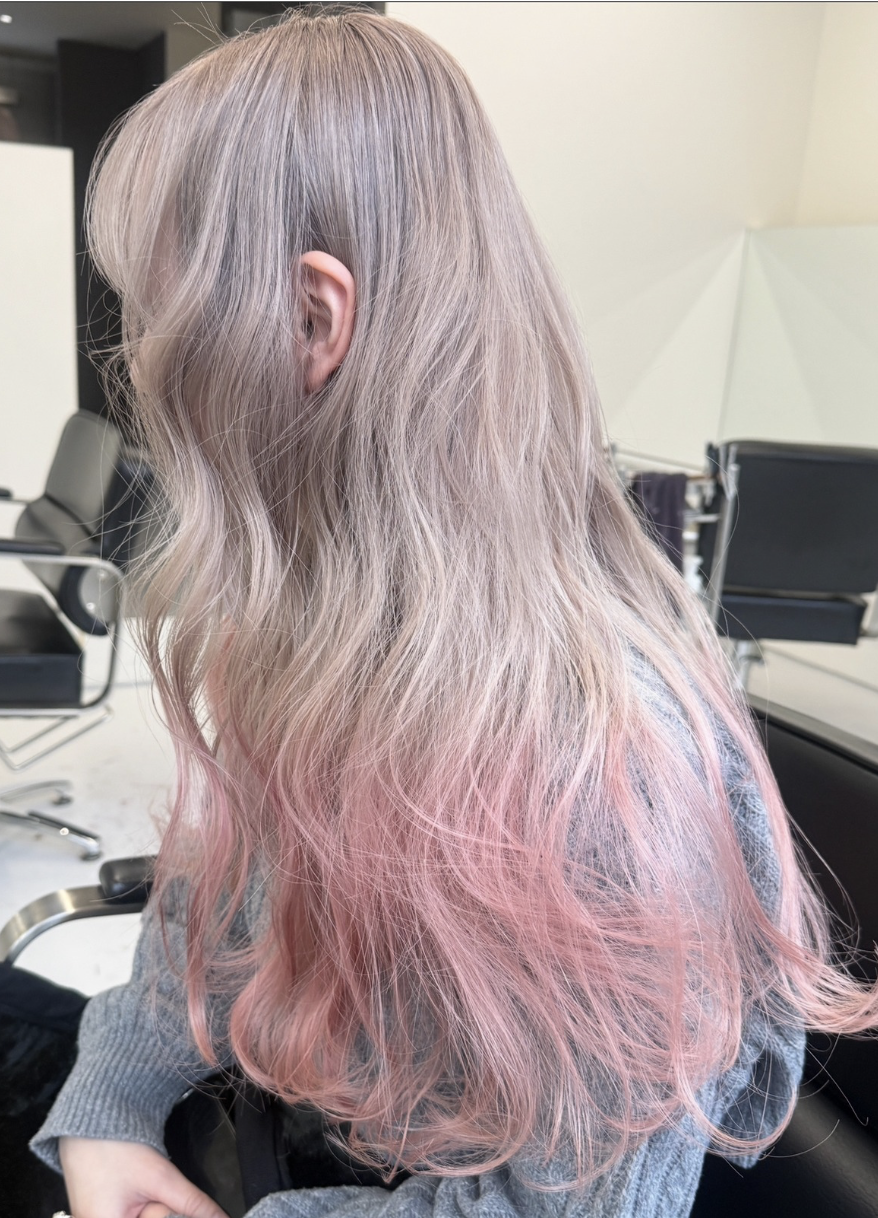 ・金髪っぽさを抑えて毛先はピンクに